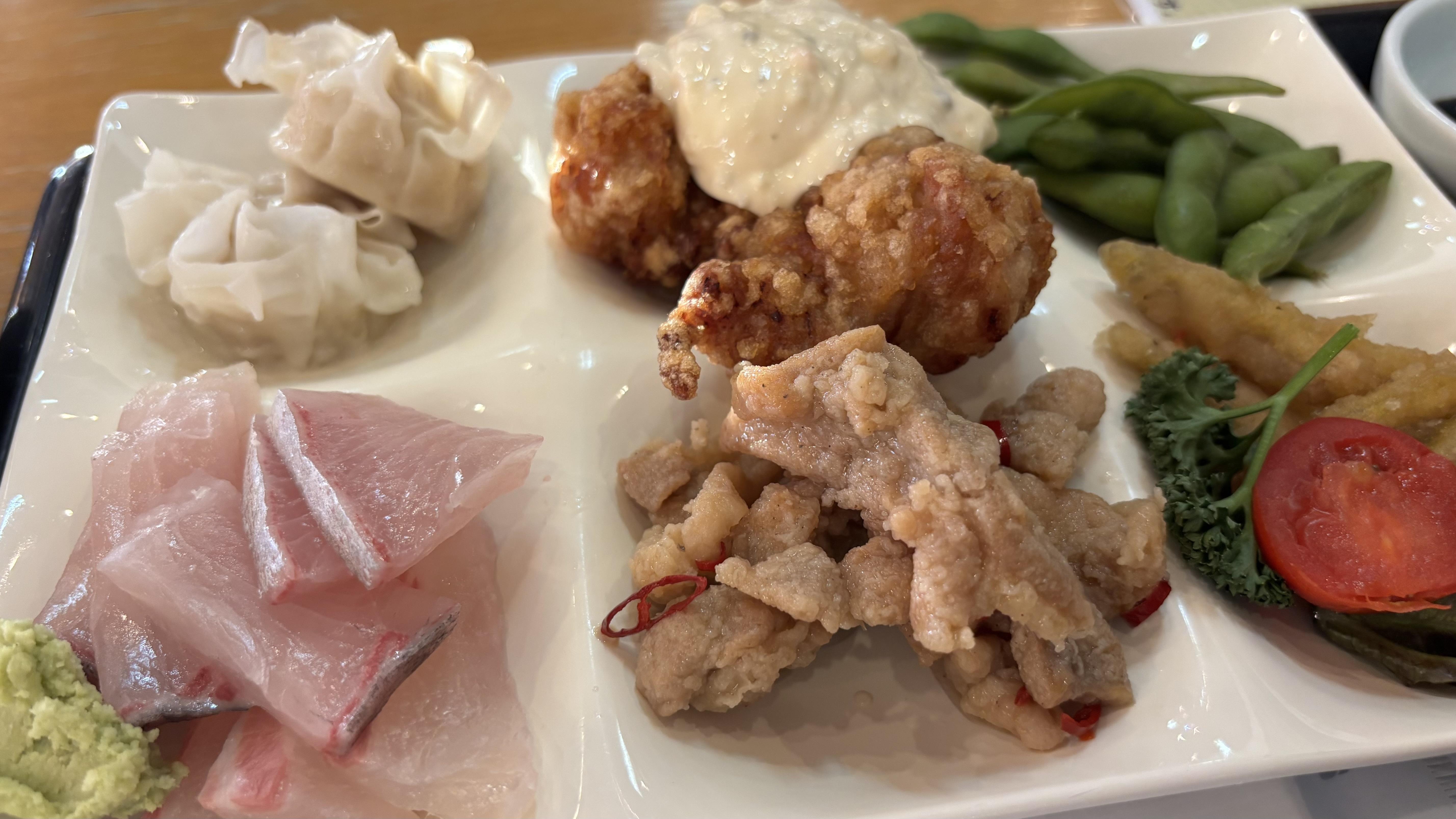 朝食・夕食共にビュッフェなのですが、予約時に「牡蠣の天ぷら」付のプランにしていたので、途中で牡蠣の天ぷらが運ばれてきました。
