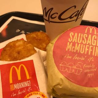 ソーセージエッグマフィンのセットをホットコーヒーで。