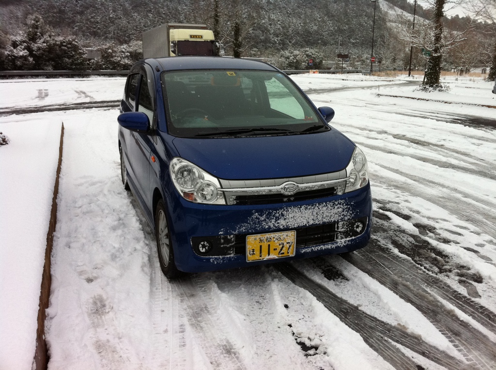 スタッドレスタイヤのレンタル(MK石油さんがやってます)では、うちのミラにちゃんとあうサイズの準備はなく、いっそスタッドレスタイヤのついたレンタカーを借りようかとも思いましたがこれもすでに予約満杯状態。