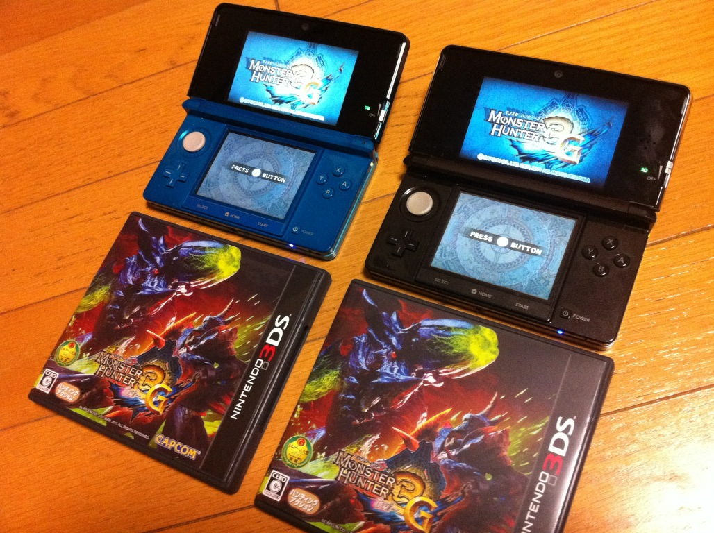 直前に娘が自分のこづかいで買った3DS本体と、おばあちゃんにねだって手に入れたモンスターハンター3G。