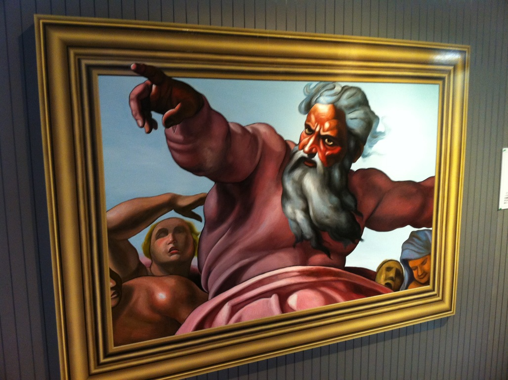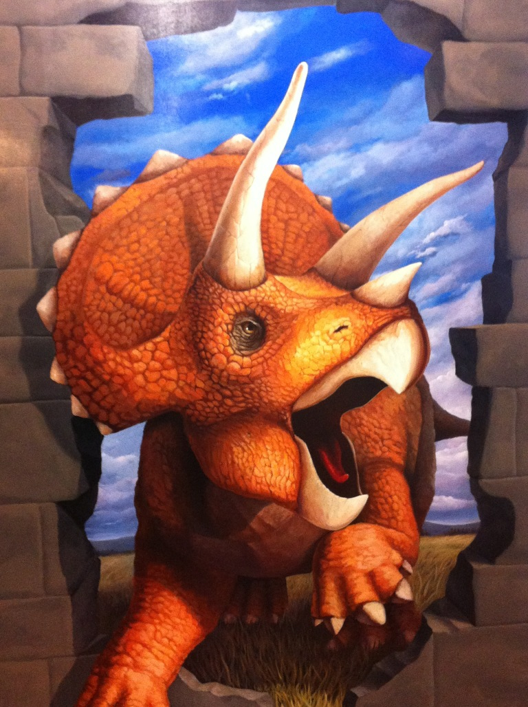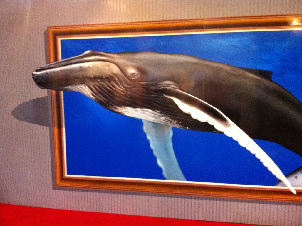 カメラは片目で見ているのと同じなので、写真で撮ると逆に立体に見えると言う不思議な絵です。