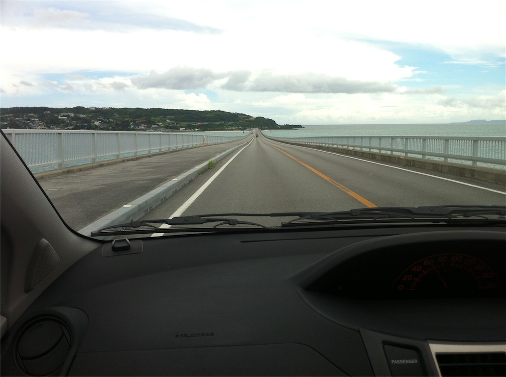 古宇利島という島があって、橋が架かっていて、きれいな海の上を車で渡れます。