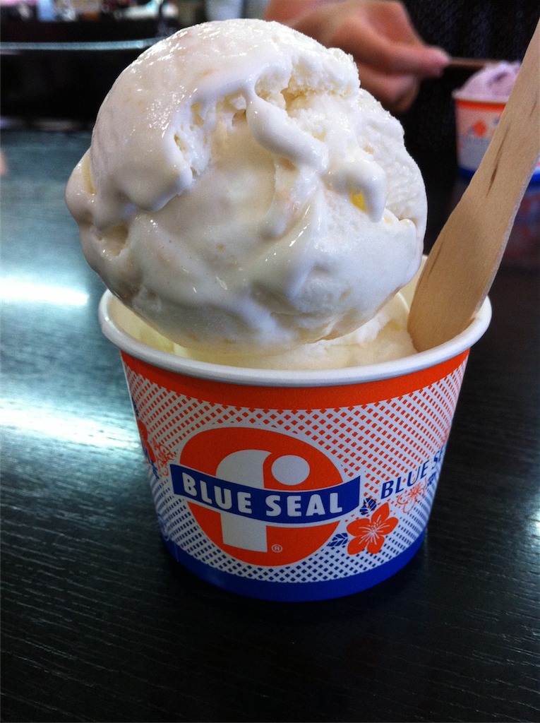 で、58号線沿いのドライブイン的なお店で、ブルーシールのアイスをゲット。