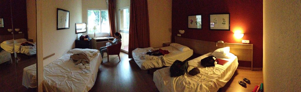 部屋の様子。ツインの部屋にベッドを追加している。そんなに狭く感じない。