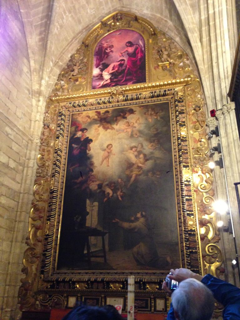 さて、大聖堂へ入ります。この大聖堂は、バチカン市国のサンピエトロ大聖堂、ロンドンのセントポール大聖堂とともに世界三大聖堂のひとつだそうで。山中家はヒラルダの塔には登りませんでしたが、ロバでも登れる様にスロープになっているとか。