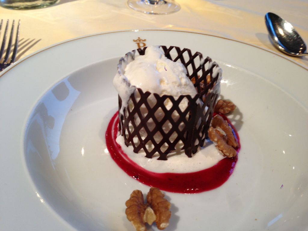 デザートは、アイスにチョコレートのアミが巻いてあるもの。