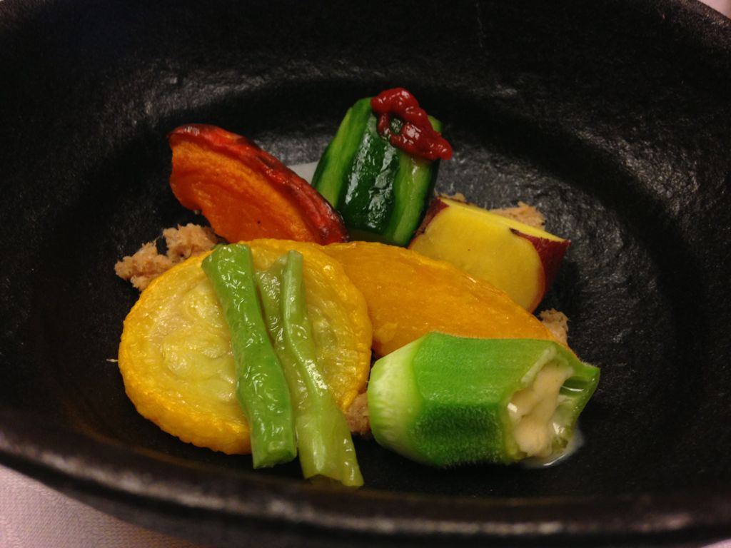 色々な野菜を、あげたり蒸したり焼いたりしたものを、盛り合わせています。